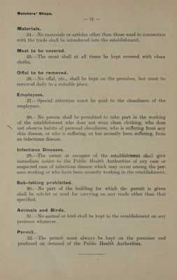 Credit: Model conditions drawn up by the Department of Public Health for certain manufactories, shops, markets, etc., requiring licences under the "Etablissements insalubres" law. Source: Wellcome Collection.