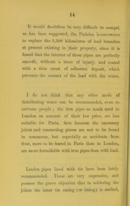 Credit: On the action of water upon lead pipes / being a translation from the French of M. Belgrand ; with introductory remarks by W. Sedgwick Saunders. Source: Wellcome Collection.