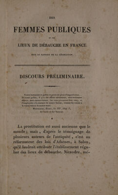 Credit: Histoire de la législation sur les femmes publiques et les lieux de débauche / Par M. Sabatier. Source: Wellcome Collection.
