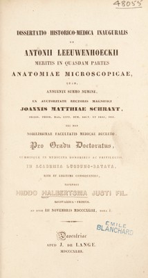 De Antonii Leeuwenhoeckii meritis in quasdam partes anatomiae microscopicae ... / [Hidde Justuszoon Halbertsma].