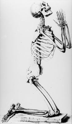 Credit: M0019842: Illustration of a human skeleton in a kneeling posture, 1733. Source: Wellcome Collection.
