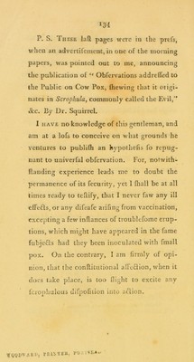 Credit: Some recent cases of small pox subsequent to vaccination. To which are added, experiments to ascertain the effect of vaccinating in the hand in imitation of the casual disease ; with facts, and observations on the effect of eruptive diseases in removing the security derived from cow pox / [William Goldson]. Source: Wellcome Collection.