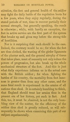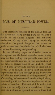 Remarks on the loss of muscular power arising from the ordinary foot-clothing now worn, and on the means required to obviate this loss : being a paper read before the British Association at Cambridge, October, 1862 / by James Dowie.