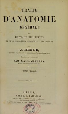 Traité d'anatomie générale, ou, Histoire des tissus et de la composition chimique du corps humain / par J. Henle ; traduit de l'allemand par A.-J.-L. Jourdan.