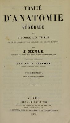 Traité d'anatomie générale, ou, Histoire des tissus et de la composition chimique du corps humain / par J. Henle ; traduit de l'allemand par A.-J.-L. Jourdan.