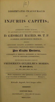Dissertatio inauguralis de injuriis capitis ... / eruditorum examini subjicit Fredericus Gulielmus Morris.