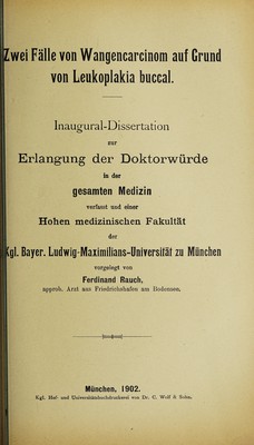 Zwei Fälle von Wangencarcinom auf Grund von Leukoplacia buccal ... / vorgelegt von Ferdinand Rauch.
