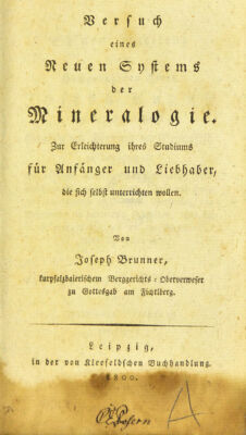 Versuch eines neuen Systems der Mineralogie. Zur Erleichterung ihres Studiums für Anfänger und Liebhaber, die sich selbst unterrichten wollen / Von Joseph Brunner.