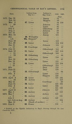 Further correspondence of John Ray / edited by Robert W.T. Gunther.