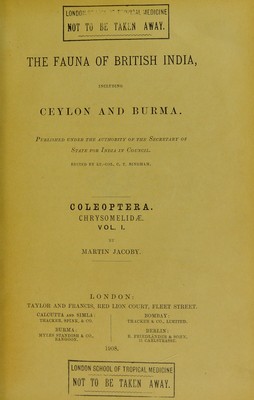 The Fauna of British India, including Ceylon and Burma / edited by C.T. Bingham. Coleoptera. Vol.I. (Cerambycidae) / by C.J. Gahan. [Vol.II]. Chrysomelidae. Vol.I / by Martin Jacoby.