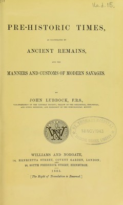 ![\L>.L15 PRE-HISTORIC TIMES, AS ILLUSTRATED BY ANCIENT REMAINS, AND THE MANNERS AND CUSTOMS OF MODERN SAVAGES. BT JOHN LUBBOCK, F.E.S., VICE-PRESIDENT OF THE LINN.®AN SOCIETY ; FELLOW OF THE GEOLOGICAL, ZOOLOGICAL, AND OTHER SOCIETIES \ AND PRESIDENT OF THE ETHNOLOGICAL SOCIETY. WILLIAMS AND NORGATE, 14, HENRIETTA STREET, COVENT GARDEN, LONDON; AND 20, SOUTH FREDERICK STREET, EDINBURGH. 1 8 6 5. \ The Right of Translation is Reserved.]](https://iiif.wellcomecollection.org/image/b2130936x_0011.jp2/full/800%2C/0/default.jpg)