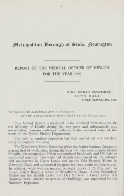 [Report of the Medical Officer of Health for Stoke Newington, The Metropolitan Borough].
