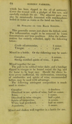 Credit: The modern farrier, or, The art of preserving the health and curing the diseases of horses, dogs, oxen, cows, sheep, & swine : comprehending a great variety of original and approved recipes, instructions in hunting, shooting, coursing, racing, and fishing, and a summary of the game laws; with an enlivening selection of the most interesting sporting anecdotes : the whole forming an invaluable and useful companion to all persons concerned in the breeding and managing of domestic animals / by A. Lawson ... ; illustrated with numerous engravings. Source: Wellcome Collection.