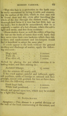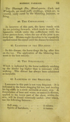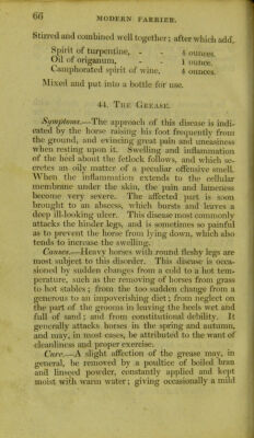 Credit: The modern farrier, or, The art of preserving the health and curing the diseases of horses, dogs, oxen, cows, sheep, & swine : comprehending a great variety of original and approved recipes, instructions in hunting, shooting, coursing, racing, and fishing, and a summary of the game laws; with an enlivening selection of the most interesting sporting anecdotes : the whole forming an invaluable and useful companion to all persons concerned in the breeding and managing of domestic animals / by A. Lawson ... ; illustrated with numerous engravings. Source: Wellcome Collection.