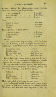 The modern farrier, or, The art of preserving the health and curing the diseases of horses, dogs, oxen, cows, sheep, & swine : comprehending a great variety of original and approved recipes, instructions in hunting, shooting, coursing, racing, and fishing, and a summary of the game laws; with an enlivening selection of the most interesting sporting anecdotes : the whole forming an invaluable and useful companion to all persons concerned in the breeding and managing of domestic animals / by A. Lawson ... ; illustrated with numerous engravings.