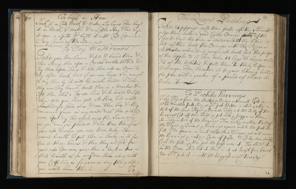 Credit: cont. from folio 24, To make Cowslip tansey. To make Fritters. To make Puffes. To boyle A Codds head. Source: Wellcome Collection.
