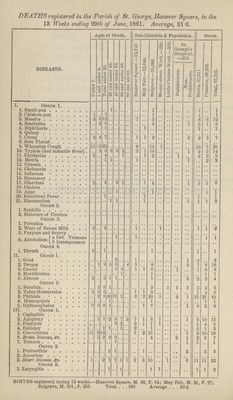 ![No. XIV.] HAN 11 QUARTEELY SUMIARY OF THE SICKNESS AND MORTALITY OF Saint Jeorge, Hanoberr Square AND OF THE PROCEEDINGS OF THE MEDICAL OFFICERS OF HEALTH, FOR THE QUARTER ENDING MARCH 30th, 1861. With Summary of the Year. LONDON: PRINTED BY GEORGE PHIPPS, UPPER RANELAGH STREET, PIMLICO, s.W.](https://iiif.wellcomecollection.org/image/b18247234_0001.jp2/full/800%2C/0/default.jpg)