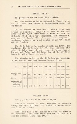 Credit: [Report 1931] / School Medical Officer of Health, Exeter. Source: Wellcome Collection.