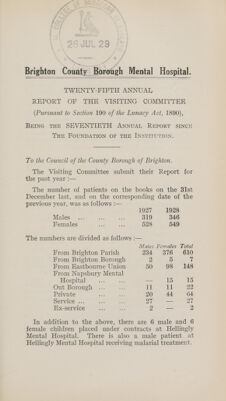 Annual report of the Brighton County Borough Mental Hospital : Haywards Heath : 1928