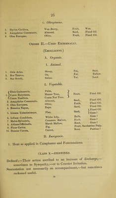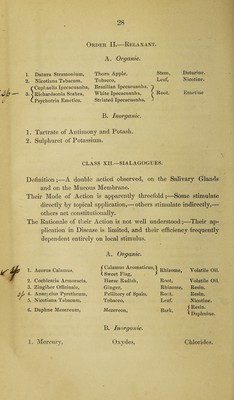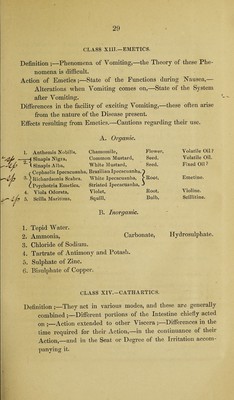Credit: Syllabus for the use of students attending the lectures on materia medica, in Marischal College and University, Aberdeen / by William Henderson. Source: Wellcome Collection.