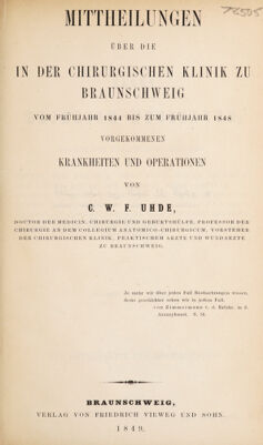 Mittheilungen über die in der chirurgischen Klinik zu Braunschweig, vom Frühjahr 1844 bis zum Frühjahr 1848 vorgekommenen Krankheiten und Operationen / [Carl Wilhelm Friedrich Uhde].