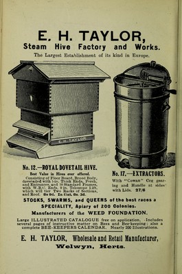Credit: British bee-keeper's guide book to the management of bees in movable-comb hives, and the use of modern bee-appliances : Illustrated / by T.W. Cowan. Source: Wellcome Collection.