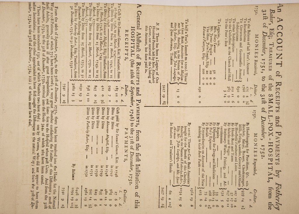 ![G> <-n U H D ^ C ® O £ bs a. ^ re ^ on 5 ft ? §.99 cr° 5 n 2 g, * r* 3 O ^3 . 0 O b* N *-i %°'No' N ® ? ^ c $* O ^ P 3 i 5’ ;§* S' 2 “' <*> cr^. cr^ cr'4 rr S 1 - ^ ^ q o> hX? t/ '“* ^1-^ l—jV £• S° O'4 ^oo y.-^ ^ r-t r-t _tx ^ rr O' Co o'* * ° rt 3 OO Oi hi O OO 00 4^ *-* 00 04 -4^ •P^ . CO U O OO 04 ►* VO Ui t-4 M VO Ul VO On 0 O VI M4 *4 Ki UA UA O M VC 0 O t>lM •H« +*|,,» y> a CD S3 cd *-t a- o > CD /—t- ^ 3) ;=£> 1 ' h-H i—} *T3 > £> ' r o >-n w n w HH *d H CO va 5- £3 ° w n o - 2 cr g O H •*■> cn S’ £? P Sr »§. p ** £u o r ^ *n s > Cu f . *#• 1 c D V I o cr V“ -t >—* • rt r-t- • r^t r-t w-* • rr r-t *— * rt rt 3*- ^ 3 33 0 0 O 0 0 ^ cr cr cr cr rr- ^ vT W V<J v: v; v- v: O • m • rt a M • bt>j SN O-i d1 r^- 3. cr r~f r-t O r-t 0 rr rr 0 » Ol 3 0 Q fcd fc 'I v W i i »\> ?Sm % N w i CO • *1 Co Si § SJ <s *s. O C5 2 <s 't v* 3 W X IM • 3 M* 3 *— « 3 U- • 3 M* 3 td M *-> tm **. p VJ N1 SI VI p K , V-T| K> v-n V/l O -P^ VO 4- 00 n O 2 ^ 4^ CIS C £ si - CN Ki \ So | O -U 04 vO OO 00 VO r^ -f* sO -f- Oi 4- M 04 OO O M 4- C\ N on vO on 0 on -vl M m VO | vO O ^1 00 N 04 • M O 04 00 o-» Os V4 O O «V. • 1 b*iM l ■W*. tlw ] ti^i vr 4^ O w 2! H d ^ *0 > £T >-f O £ § ^ ^ r-l w 25 o ._ -h n H CO SI b 3 1 3 *-i ►—j s~. *n. «—1 rr VI C On r-t to ¥—* < • O 3 O / . B. There has been a Legacy of One Hundred Pounds left by Mrs. Elizabeth Carter> not received at the doling of this Account, but fince paid in* C/I 04 P n 5* **«- ° Zj by- ►s ^ t,. * e-i i * g ^srP^ 1 w . 3L ^ M § . ♦3 fs ^ ^ L g; DO ni P <T> P ^ E S q 3 w s: r c I^rr £-3 H « r» e. 3 o 5V. O ^ q ? • .5 ^ <? ^ S.?$ • ^ v> v a § 15 « w ? W§ a W • I E3 ts) OWN'-'1 o o o o o o o o o o o o *4 H H H o c o ZL rr o tr zr 7-, o n> or § a c/d’ V/ Cp z- to o -! C 3 m' X ^ rf O - 3 r. ^ o O t-' n w o (S000 c — bo r*'- cr C; p ~r n‘ c S3 O c D •-? cn cn P 3 P- o C < o ►t 3 a ?* (T v> 3 O d, DP p p It uj o*S S 8 o p 3 *< a p *-t ■* ts. > O n o IE p W M Os *vj — > I g I -w M o M W CD o o o 'm o c. Vi fr-4 VO Os - 04 CT'sI sj Q PVM N O ccon ►- Vo O O , M ** 4^ vO ^ O O 4* Os . O O 0 vO Cs Q C U4 r^- ^ *>v <& V, ^ • • 4-,w *s-4 CD P 3 7T n> '-t to p 3 P- H ►» r> P •—i P <T» ►*f CD K p 3 to v w cr ^^3 2 ' p-oq S' ^ 3 Si a ,V5 O o O S' s? a !> 4 N. 0^“ N# P 3 P- fti •-J £p Si CrQ 5‘ <-t 3” o p 5 n> co o --». 't ba Si H 3T -t O ra tc*§* o 3 n> 3“> O r-f tr k—* ■ CD n tr p t D a to p 3 ?r > 3 3 3 O CO to W bo to fed X v: ^ X ^ :rrlD3^)C/0 ; X c n 3^* n. P v; o bo to bo W _ . W ^ v: V: ^ ^ br^c l-x 3 O 2T Q- o c 04 P 4^ OS O 04 on 04 Os O 4- tvi VO -ps kH On *. M Os 4*M 1 0 +*U 00 c z >—i W CD w *ru o 3 c- n> 4^ tai M KJ sD N ^ O C'Vaa 04 on on O 04 N 04 V-*! QO 0^04 N) ^4 \J ^vl VO on sj vO 4^ • O 0 44. cs Cs O 0 4^ K> 5? n aCCOI'NT of Receipts and Payments by Fotherley Baker, Efq; Treasurer of the SMALL-POX - HOSPITAL, from the 31ft of December, 1751, to the 31ft of December, 1752.](https://iiif.wellcomecollection.org/image/b30350244_0019.jp2/full/800%2C/0/default.jpg)
