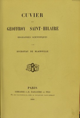 Cuvier et Geoffroy Saint-Hilaire : biographies scientifiques / par Ducrotay de Blainville.