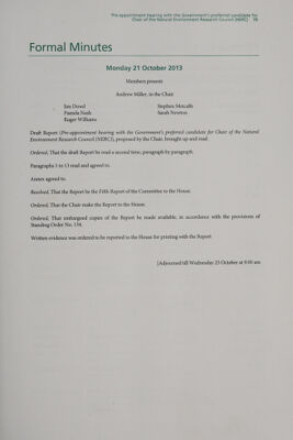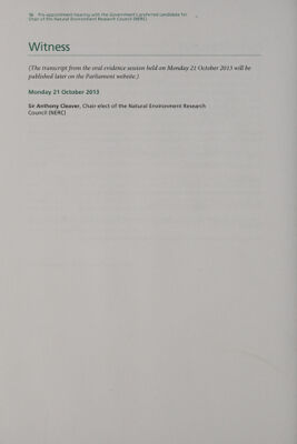 Credit: Pre-appointment hearing with the Government's preferred candidate for chair of the Natural Environment Research Council (NERC) : fifth report of 2013-2014 : report, together with formal minutes / House of Commons Science and Technology Committee. Source: Wellcome Collection.