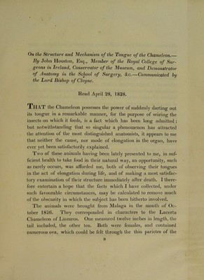 An essay on the structure and mechanism of the tongue of the chameleon / [John Houston].