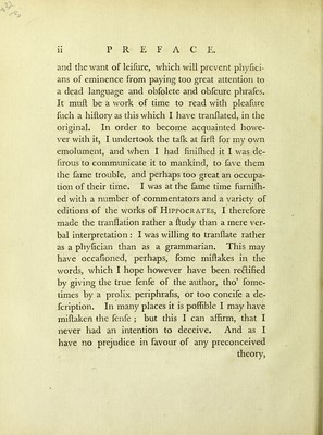 Credit: The history of epidemics / by Hippocrates. In seven books. Translated into English from the Greek, with notes and observations, and a preliminary dissertation on the nature and cause of infection. By Samuel Farr, M.D. F.R.S. Source: Wellcome Collection.