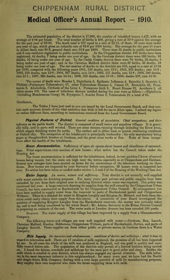 Credit: [Report 1910] / Medical Officer of Health, Chippenham R.D.C. Source: Wellcome Collection.
