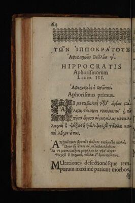 Hoi Aphorismoi pexikoi te kai emmetroi. Aphorismi, soluti et metrici / Interprete Joanne Heurnio. Metaphrastis, Joanne Frero et Radulpho Wintertono [--Epigrammata regiorum medicinae professorum].