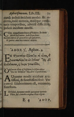Hoi Aphorismoi pexikoi te kai emmetroi. Aphorismi, soluti et metrici / Interprete Joanne Heurnio. Metaphrastis, Joanne Frero et Radulpho Wintertono [--Epigrammata regiorum medicinae professorum].