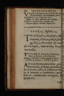 Hoi Aphorismoi pexikoi te kai emmetroi. Aphorismi, soluti et metrici / Interprete Joanne Heurnio. Metaphrastis, Joanne Frero et Radulpho Wintertono [--Epigrammata regiorum medicinae professorum].