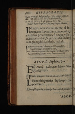 Hoi Aphorismoi pexikoi te kai emmetroi. Aphorismi, soluti et metrici / Interprete Joanne Heurnio. Metaphrastis, Joanne Frero et Radulpho Wintertono [--Epigrammata regiorum medicinae professorum].