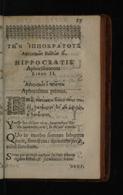 Hoi Aphorismoi pexikoi te kai emmetroi. Aphorismi, soluti et metrici / Interprete Joanne Heurnio. Metaphrastis, Joanne Frero et Radulpho Wintertono [--Epigrammata regiorum medicinae professorum].