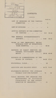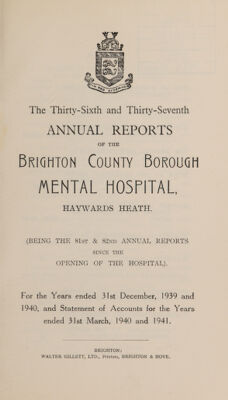Annual report of the Brighton County Borough Mental Hospital : 1939-1940 (& statement of accounts March 1940 & 1941)