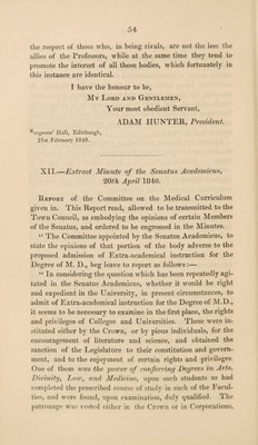 Papers in connexion with the letter of Prof. Syme, regarding the present state and future prospects of the Medical School.
