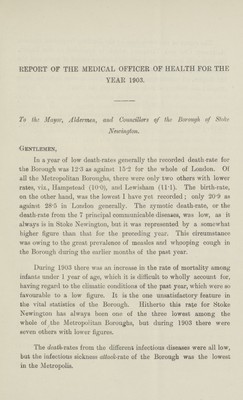 [Report of the Medical Officer of Health for Stoke Newington, The Metropolitan Borough].