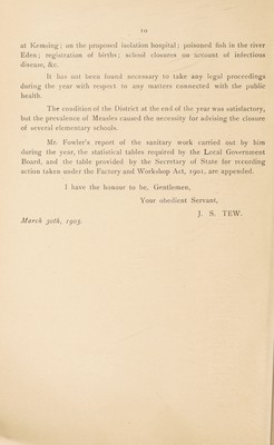 Credit: [Report 1904] / Medical Officer of Health, Sevenoaks R.D.C. Source: Wellcome Collection.