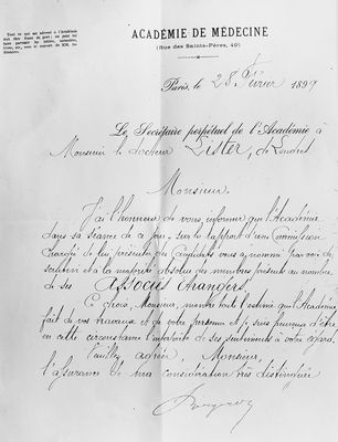 M0019539: Letter to Joseph Lister from the Academie de Medicine, 1899