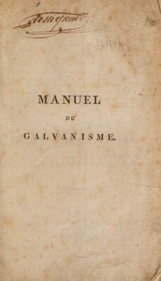 Credit: Manuel du galvanisme, ou description et usage des divers appareils galvaniques employés jusqu'à oe jour, tant pour les recherches physiques et chimiques, que pour les applications médicales / Par Joseph Izarn ... Ouvrage mis au nombre de ceux qui doivent former les bibliothèques des lycées. Source: Wellcome Collection.