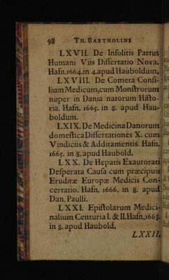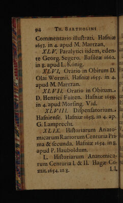 Thomae Bartholini De bibliothecae incendio dissertatio ad filios / [Thomas Bartholin].