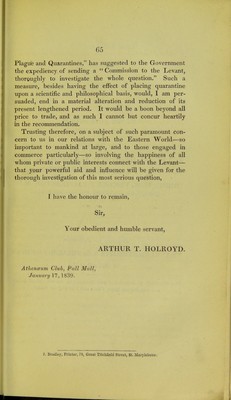 The quarantine laws, their abuses and inconsistencies : a letter addressed to the Rt. Hon. Sir John Cam Hobhouse, bart. M.P. ... / by Arthur T. Holroyd.