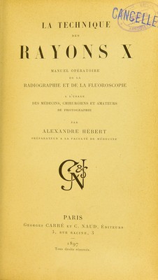 La technique des rayons X : manuel opératoire de la radiographie et de la fluoroscopie à l'usage des médecins, chirurgiens et amateurs de photographie / par Alexandre Hébert.