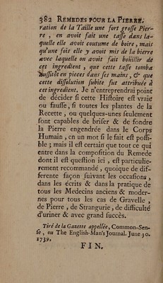 Credit: Recueil d'experiences et d'observations sur la pierre, et en particulier sur les effets des remedes de Mademoiselle Stephens, pour dissoudre la pierre / [Edited and translated by S.F. Morand and F. de Bremond]. Source: Wellcome Collection.