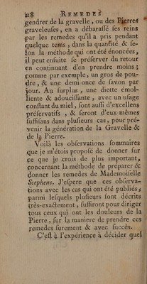 Recueil d'experiences et d'observations sur la pierre, et en particulier sur les effets des remedes de Mademoiselle Stephens, pour dissoudre la pierre / [Edited and translated by S.F. Morand and F. de Bremond].