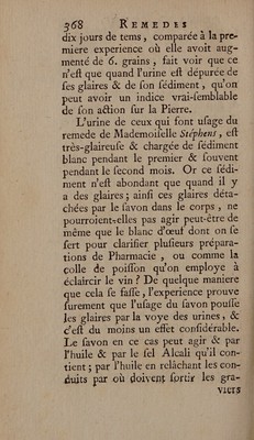 Recueil d'experiences et d'observations sur la pierre, et en particulier sur les effets des remedes de Mademoiselle Stephens, pour dissoudre la pierre / [Edited and translated by S.F. Morand and F. de Bremond].