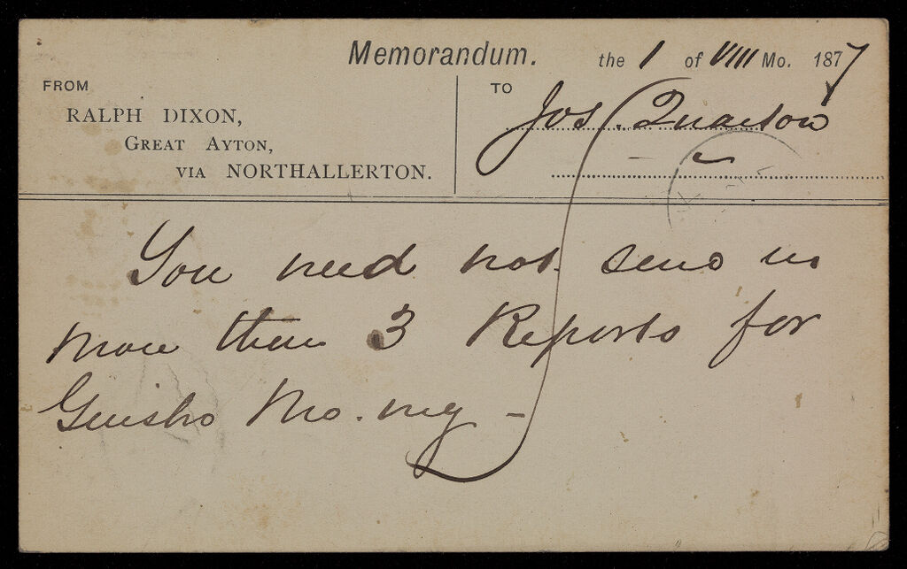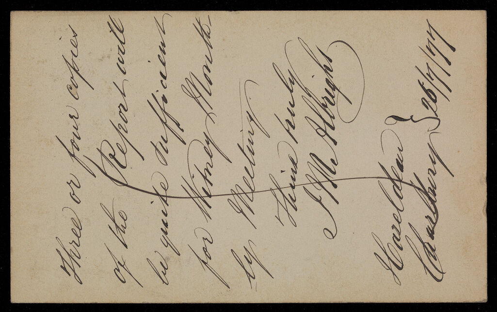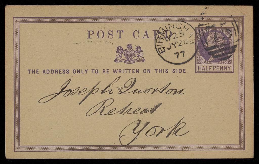 Credit: Postcards from various Monthly meetings around the country specifying how many Retreat Reports will be required. Source: Wellcome Collection.